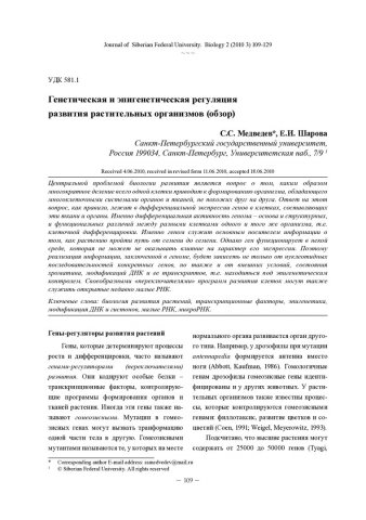 Генетическая и эпигенетическая регуляция развития растительных организмов (обзор)статья из журнала