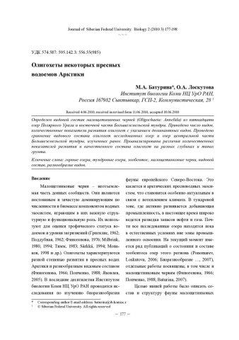 Олигохеты некоторых пресных водоемов Арктикистатья из журнала
