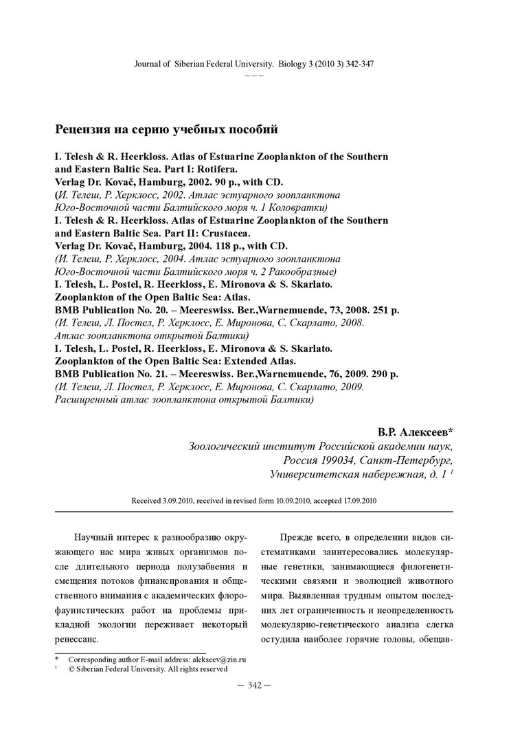 Библиографическое описание:Алексеев, В. Р. Рецензия на серию учебных пособий / В. Р. Алексеев. - Текст : непосредственный // Журнал Сибирского федерального университета. Биология. - 2010. - Т. 3, № 3. - С. 342-347. - ISSN 1997-1389.