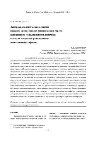Дендрологические аспекты реакции древостоев на абиотический стресс как фактора популяционной динамики в очагах массового размножения насекомых-фитофагов