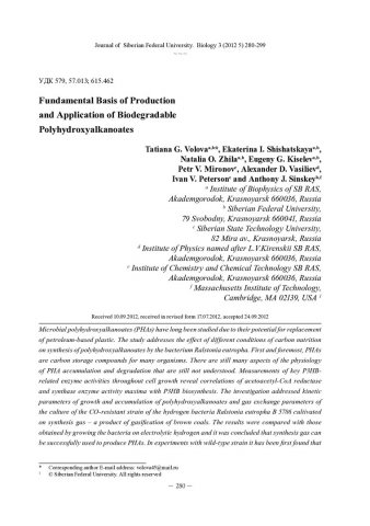 Библиографическое описание:Fundamental Basis of Production and Application of Biodegradable Polyhydroxyalkanoates = Фундаментальные основы производства и применения биодеградируемых полигидроксиалканоатов / T. G. Volova [et. al]. - Текст : непосредственный // Журнал Сибирского федерального университета. Биология. - 2012. - Т. 5, № 3. - С. 280-299 : ил. - Библиогр.: с. 294-299. - ISSN 1997-1389.