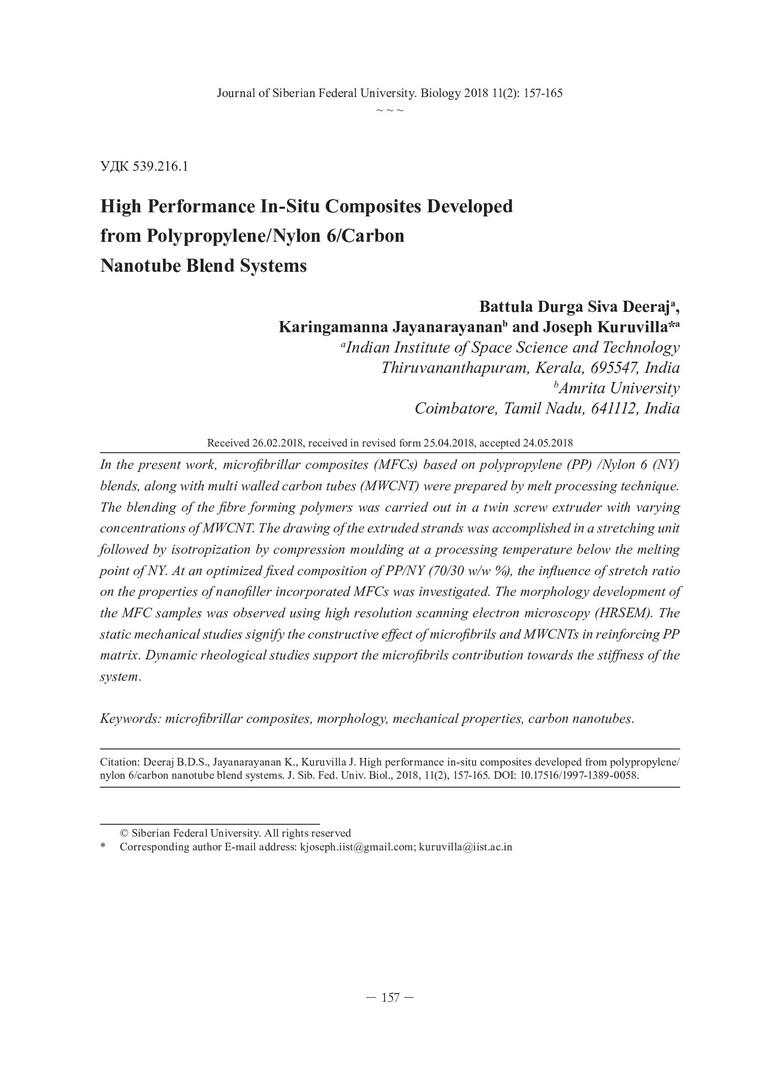 Библиографическое описание:Deeraj, Battula Durga Siva. High Performance In-Situ Composites Developed from Polypropylene/Nylon 6/Carbon Nanotube Blend Systems = Высокоэффективные композиты in situ на основе смесевых систем "полипропилен/нейлон-6/углеродные нанотрубки" / B. D. S. Deeraj, K. Jayanarayanan, J. Kuruvilla. - Текст : непосредственный // Журнал Сибирского федерального университета. Биология. - 2018. - Т. 11, № 2. - С. 157-165 : ил., табл. - Библиогр.: с. 163-165. - ISSN 1997-1389.