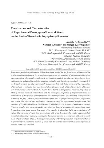 Библиографическое описание:Boyandin, A. N. Сonstruction and Characteristics of Experimental Prototypes of Ureteral Stents on the Basis of Resorbable Polyhydroxyalkanoates = Конструирование и характеристики экспериментальных образцов урологических стентов на основе резорбируемых полигидроксиалканоатов / A. N. Boyandin, V. V. Usenko, M. P. Myltygashev. - Текст : непосредственный // Журнал Сибирского федерального университета. Биология. - 2018. - Т. 11, № 2. - С. 138-145 : ил. - Библиогр.: с. 144-145. - ISSN 1997-1389.