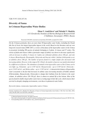 Diversity of Fauna in Crimean Hypersaline Water Bodiesстатья из журнала