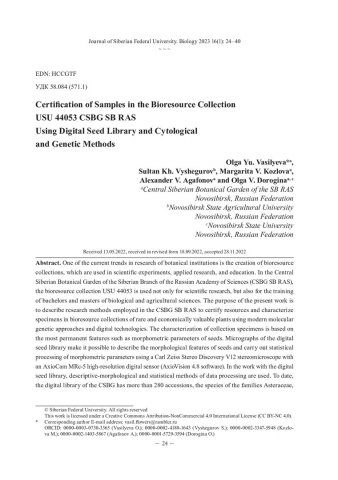 Паспортизация объектов биоресурсной коллекции USU 44053 ЦСБС СО РАН с использованием цифровой семенотеки и цитолого-генетических методовстатья из журнала