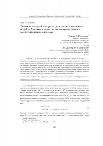 Библиографическое описание:Кучунова, Е. В. Вычислительный алгоритм для расчета волновых полей в блочных средах на многопроцессорных вычислительных системах = Computational Algorithm for Calculation of Wave Fields in Block Media on Multiprocessor Computers / Е. В. Кучунова, В. М. Садовский. - Текст : непосредственный // Журнал Сибирского федерального университета. Математика и физика. - 2008. - Т. 1, № 2. - С. 210-220. - Библиогр.: с. 220 (8 назв.). - ISSN 1997-1397.