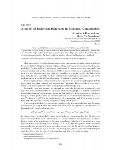 Библиографическое описание:Kourshakova, K. A. A model of Reflection Behaviour in Biological Communities / K. A. Kourshakova, Maria Yu. Senashova. - Текст : непосредственный // Журнал Сибирского федерального университета. Математика и физика. - 2008. - Т. 1, № 3. - С. 284-289. - Библиогр.: с. 288-289 (8 назв.). - ISSN 1997-1397.