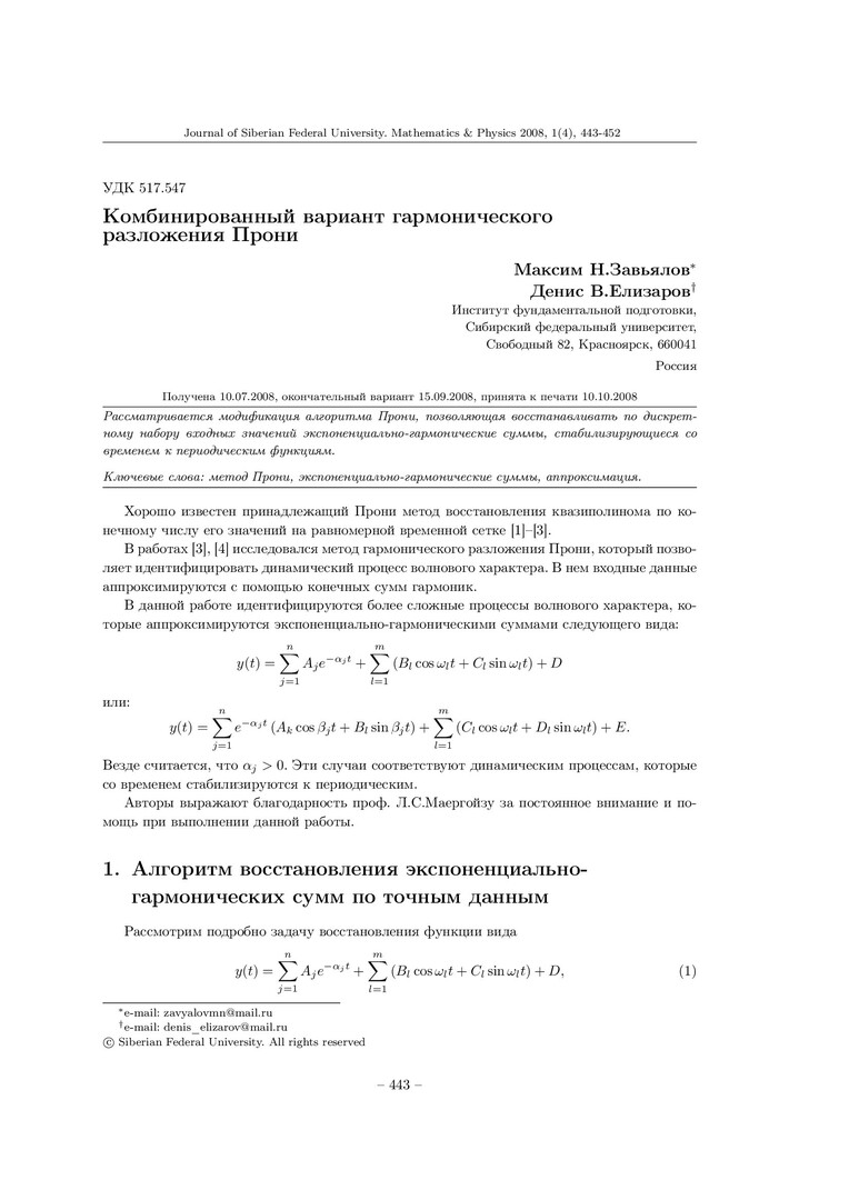 Библиографическое описание:Завьялов, М. Н. Комбинированный вариант гармонического разложения Прони = A Combined Variant of Prony’s Harmonic Expansion / М. Н. Завьялов, Д. В. Елизаров. - Текст : непосредственный // Журнал Сибирского федерального университета. Математика и физика. - 2008. - Т. 1, № 4. - С. 443-452. - Библиогр.: с. 452 (4 назв.). - ISSN 1997-1397.