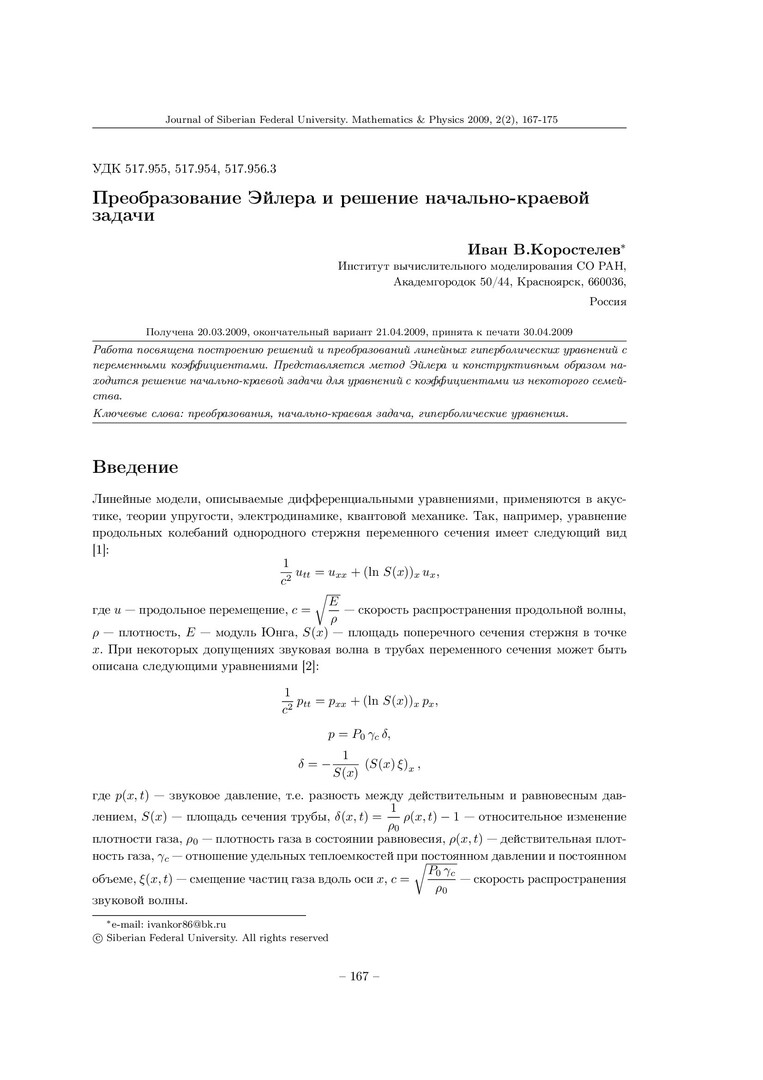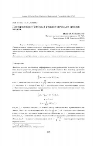 Библиографическое описание:Коростелев, И. В. Преобразование Эйлера и решение начально-краевой задачи = The Euler Transformation and a Solution of an Initial-Boundary Problem / И. В. Коростелев. - Текст : непосредственный // Журнал Сибирского федерального университета. Математика и физика. - 2009. - Т. 2, № 2. - С. 167-175. - Библиогр.: с. 175. - ISSN 1997-1397.