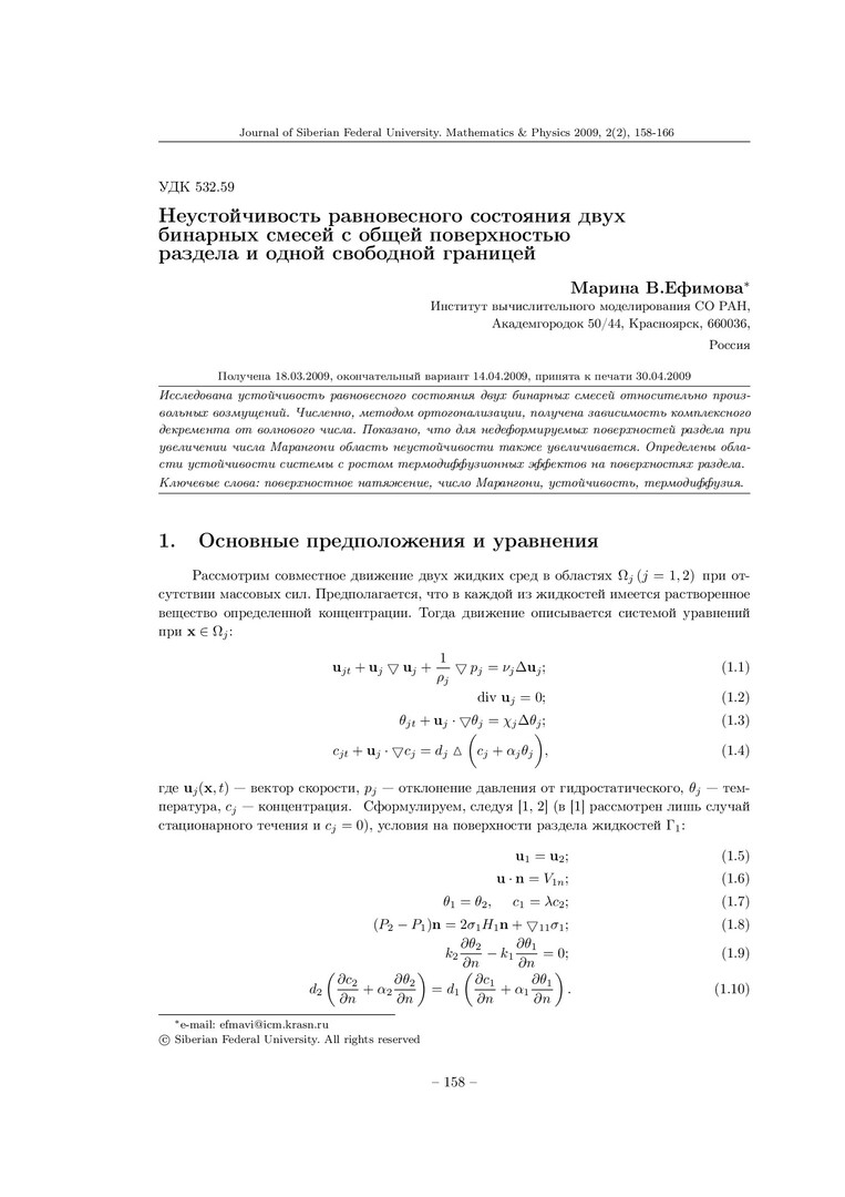 Библиографическое описание:Ефимова, М. В. Неустойчивость равновесного состояния двух бинарных смесей с общей поверхностью раздела и одной свободной границей = Instability of an Equilibrium State of Two Binary Mixtures with the General Interface and One Free Boundary / М. В. Ефимова. - Текст : непосредственный // Журнал Сибирского федерального университета. Математика и физика. - 2009. - Т. 2, № 2. - С. 158-166. - Библиогр.: с. 166. - ISSN 1997-1397.