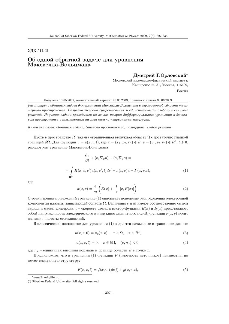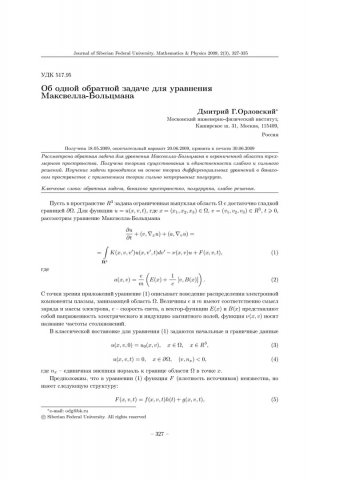 Библиографическое описание:Орловский, Д. Г. Об одной обратной задаче для уравнения Максвелла-Больцмана = On an Inverse Problem for the Maxwell-Boltzmann Equation / Д. Г. Орловский. - Текст : непосредственный // Журнал Сибирского федерального университета. Математика и физика. - 2009. - Т. 2, № 3. - С. 327-335. - Библиогр.: с. 334. - ISSN 1997-1397.