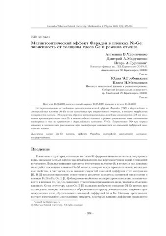 Аннотация:Экспериментально исследованы магнитооптический эффект Фарадея (ЭФ) в двухслойных и многослойных пленках Ni-Ge и его изменения при ступенчатом отжиге, а также морфология поверхности пленок. Обнаружены обратно пропорциональная линейная зависимость ЭФ от толщины промежуточного слоя Ge в многослойных пленках и резкое уменьшение поля магнитного насыщения в них по сравнению с двухслойными пленками Ni-Ge.