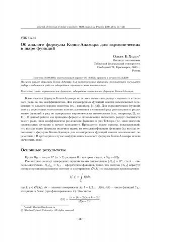 Библиографическое описание:Ходос, О. В. Об аналоге формулы Коши-Адамара для гармонических в шаре функций = On an Analogue of the Cauchy-Hadamard Formula for Harmonic Function in a Ball / О. В. Ходос. - Текст : непосредственный // Журнал Сибирского федерального университета. Математика и физика. - 2009. - Т. 2, № 4. - С. 517-520. - Библиогр.: с. 520. - ISSN 1997-1397.