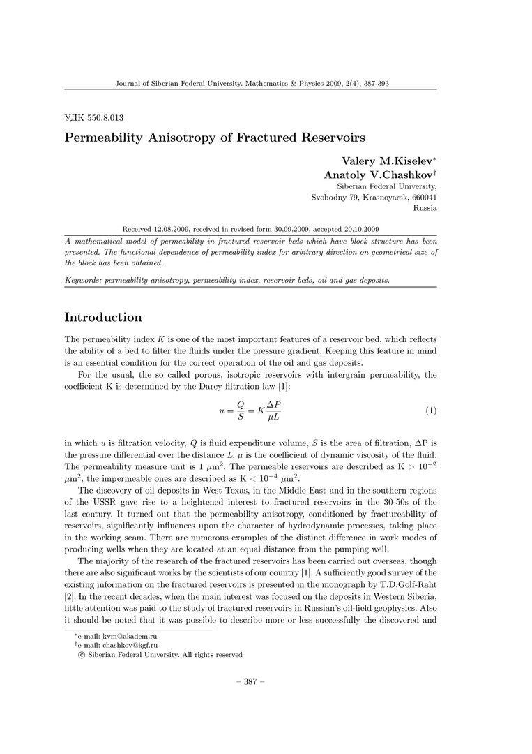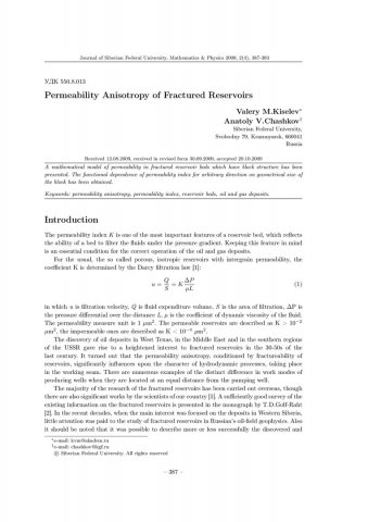 Библиографическое описание:Kiselev, V. M. Permeability Anisotropy of Fractured Reservoirs = Анизотропия проницаемости трещиновых коллекторов / V. M. Kiselev, A. V. Chashkov. - Текст : непосредственный // Журнал Сибирского федерального университета. Математика и физика. - 2009. - Т. 2, № 4. - С. 387-393. - Библиогр.: с. 393. - ISSN 1997-1397.