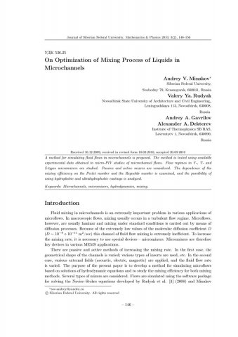 On Optimization of Mixing Process of Liquids in Microchannelsстатья из журнала