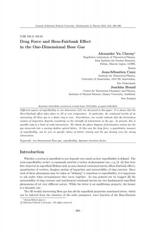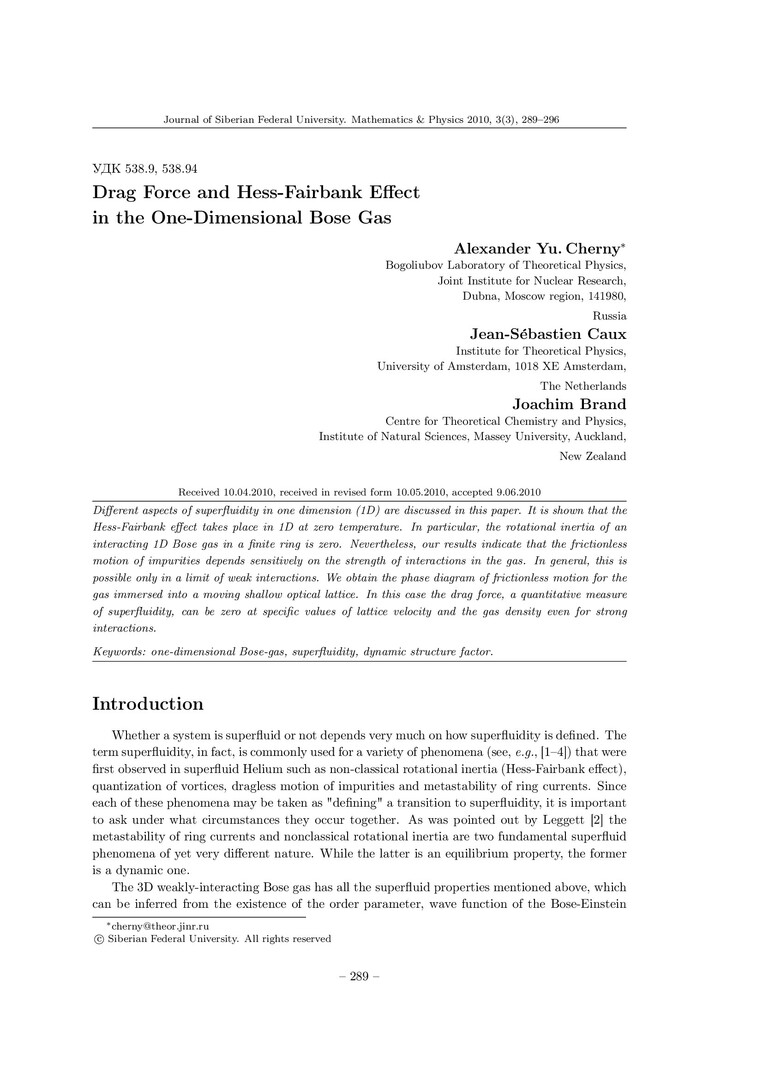 Библиографическое описание: Cherny, A. Yu. Drag Force and Hess-Fairbank Effect in the One-Dimensional Bose Gas = Сила сопротивления и эффект Хесса-Фэрбэнка в одномерном бозе-газе / A. Yu. Cherny, J.-S. Caux, J. Brand. - Текст : непосредственный // Журнал Сибирского федерального университета. Математика и физика. - 2010. - Т. 3, № 3. - С. 289-296. - Библиогр.: с. 294-296 (44 назв.). - ISSN 1997-1397.