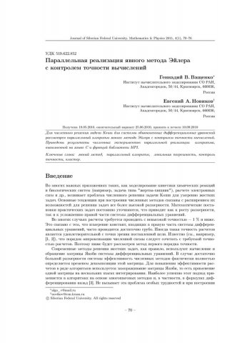 Библиографическое описание:Ващенко, Геннадий. Параллельная реализация явного метода Эйлера с контролем точности вычислений = Parallel Algorithm Explicit Euler Method with Accuracy Control / Г. В. Ващенко, Е. А. Новиков. - Текст : непосредственный // Журнал Сибирского федерального университета. Математика и физика. - 2011. - Т. 4, № 1. - С. 70-76. - Библиогр.: с. 76. - ISSN 1997-1397.