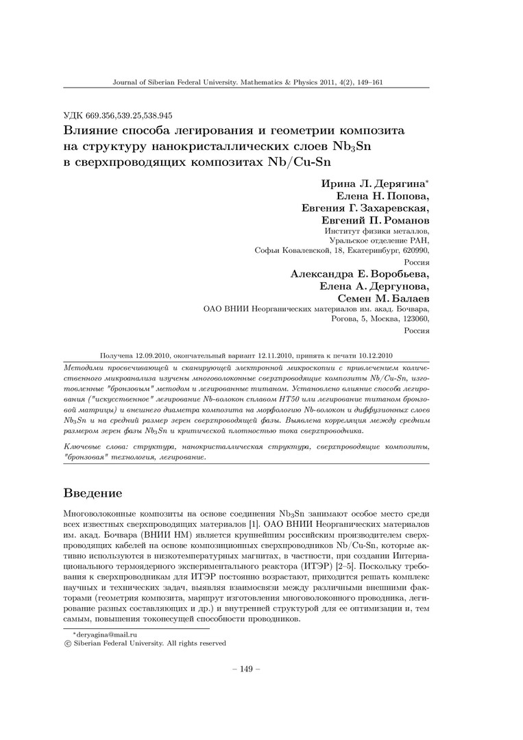 Библиографическое описание:Влияние способа легирования и геометрии композита на структуру нанокристаллических слоев Nbsub3/subSn в сверхпроводящих композитах Nb/Cu-Sn = Effect of Doping Mode and Composite Geometry on the Structure of Nanocrystalline Nb3Sn Layers in Superconducting Nb/Cu-Sn Composites / И. Л. Дерягина, Е. Н. Попова, Е. Г. Захаревская [и др.]. - Текст : непосредственный // Журнал Сибирского федерального университета. Математика и физика. - 2011. - Т. 4, № 2. - С. 149-161. - Библиогр.: с. 159-161. - ISSN 1997-1397.