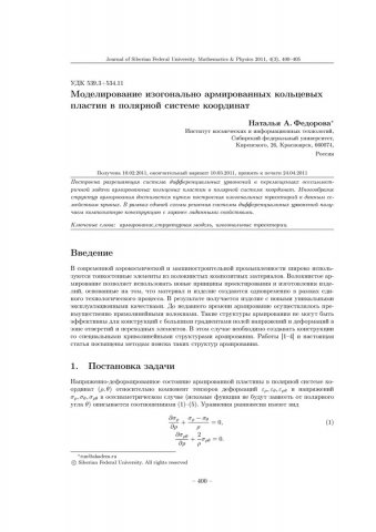 Библиографическое описание:Федорова, Наталья. Моделирование изогонально армированных кольцевых пластин в полярной системе координат = Modeling for Reinforced with Isogonal Trajectories Ring-Shaped Lamels in Polar Coordinate System / Н. А. Федорова. - Текст : непосредственный // Журнал Сибирского федерального университета. Математика и физика. - 2011. - Т. 4, № 3. - С. 400-405. - Библиогр.: с. 404-405. - ISSN 1997-1397.