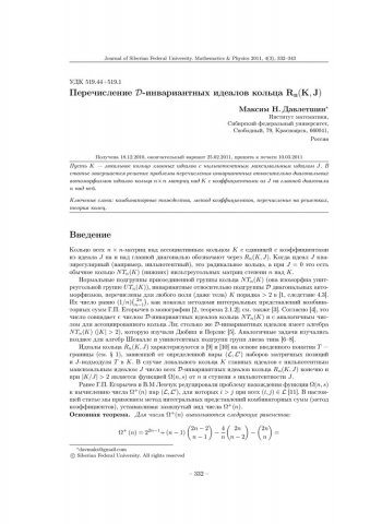 Библиографическое описание:Давлетшин, Максим. Перечисление D-инвариантных идеалов кольца Rn(K, J) = Enumeration of D-invariant Ideals of the Ring Rn(K, J) / М. Н. Давлетшин. - Текст : непосредственный // Журнал Сибирского федерального университета. Математика и физика. - 2011. - Т. 4, № 3. - С. 332-343. - Библиогр.: с. 342-343. - ISSN 1997-1397.