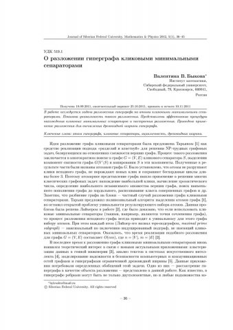 Библиографическое описание:Быкова, Валентина. О разложении гиперграфа кликовыми минимальными сепараторами = The Clique Minimal Separator Decomposition of a Hypergraph / В. В. Быкова. - Текст : непосредственный // Журнал Сибирского федерального университета. Математика и физика. - 2012. - Т. 5, № 1. - С. 36-45. - Библиогр.: с. 44-45. - ISSN 1997-1397.