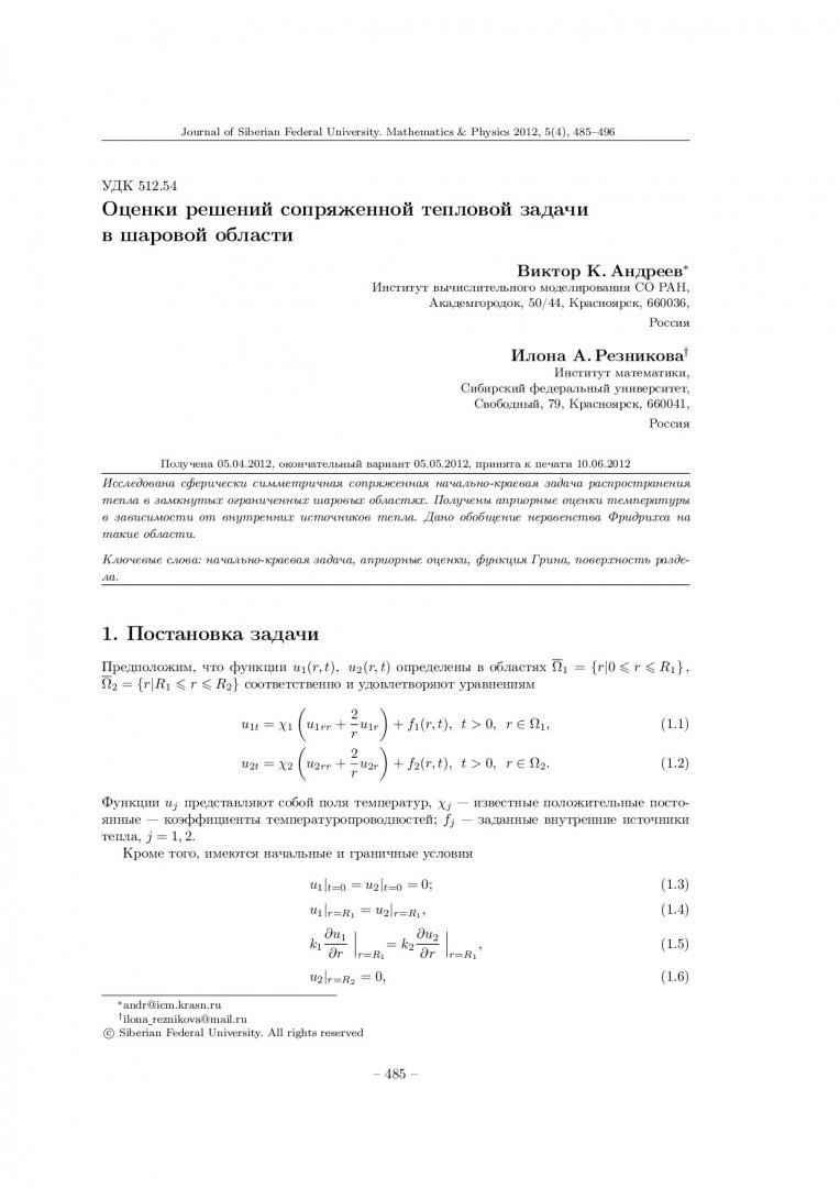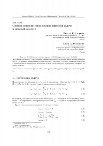 Библиографическое описание:Андреев, Виктор. Оценки решений сопряженной тепловой задачи в шаровой области = The Estimates of Solutions of Adjoint Heat Problem in Spherical Area / В. К. Андреев, И. А. Резникова. - Текст : непосредственный // Журнал Сибирского федерального университета. Математика и физика. - 2012. - Т. 5, № 4. - С. 485-496. - Библиогр.: с. 496. - ISSN 1997-1397.