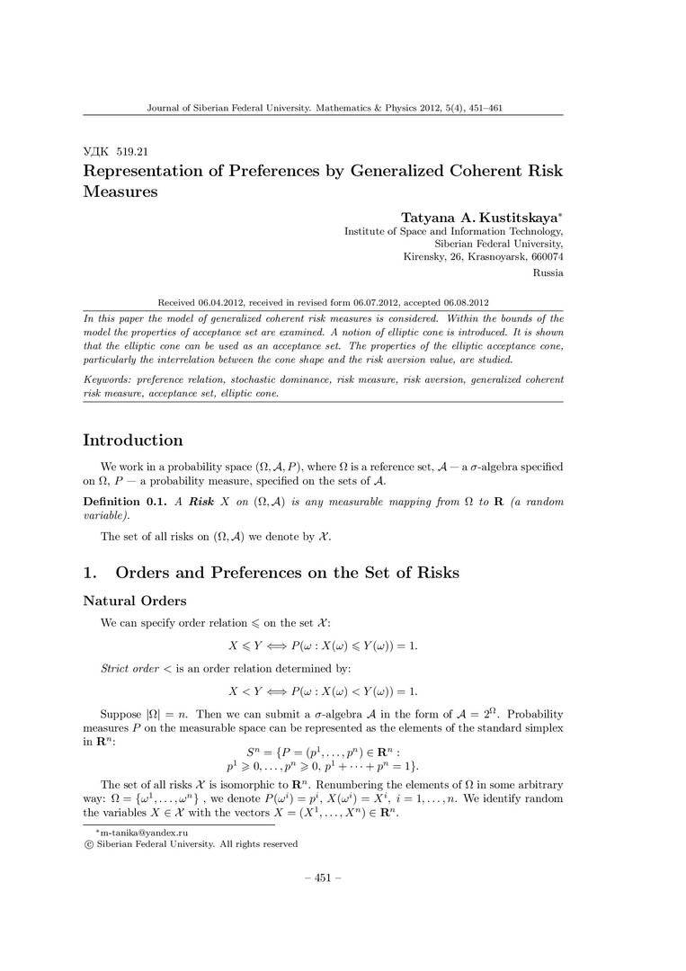 Библиографическое описание:Kustitskaya, Tatyana. Representation of Preferences by Generalized Coherent Risk Measures = Описание предпочтений на множестве рисков с помощью обобщенных когерентных мер риска / T. A. Kustitskaya. - Текст : непосредственный // Журнал Сибирского федерального университета. Математика и физика. - 2012. - Т. 5, № 4. - С. 451-461. - Библиогр.: с. 461. - ISSN 1997-1397.