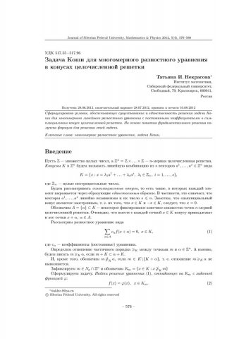 Библиографическое описание:Некрасова, Татьяна. Задача Коши для многомерного разностного уравнения в конусах целочисленной решетки = Cauchy Problem for Multidimensional Difference Equations in Lattice Cones / Т. И. Некрасова. - Текст : непосредственный // Журнал Сибирского федерального университета. Математика и физика. - 2012. - Т. 5, № 4. - С. 576-580. - Библиогр.: с. 580. - ISSN 1997-1397.