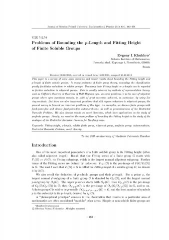 Аннотация:Данная статья является обзором некоторых открытых проблем и недавних результатов об ограничении высоты Фиттинга и p-длины конечных разрешимых групп.