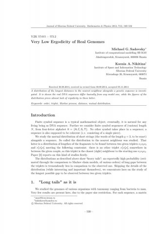 Библиографическое описание:Sadovsky, Michael. Very Low Ergodicity of Real Genomes = Реальные геномы обладают очень низкой эргодичностью / M. G. Sadovsky, K. A. Nikitina. - Текст : непосредственный // Журнал Сибирского федерального университета. Математика и физика. - 2014. - Т. 7, № 4. - С. 530-532. - Библиогр.: с. 532. - ISSN 1997-1397.