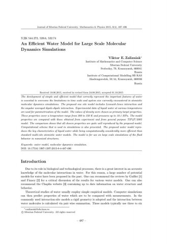 Библиографическое описание:Zalizniak, V. E. An Efficient Water Model for Large Scale Molecular Dynamics Simulations = Эффективная модель воды для моделирования больших молекулярных систем / V. E. Zalizniak. - Текст : непосредственный // Журнал Сибирского федерального университета. Математика и физика. - 2015. - Т. 8, № 4. - С. 487-496. - Библиогр.: с. 494-495. - ISSN 1997-1397.