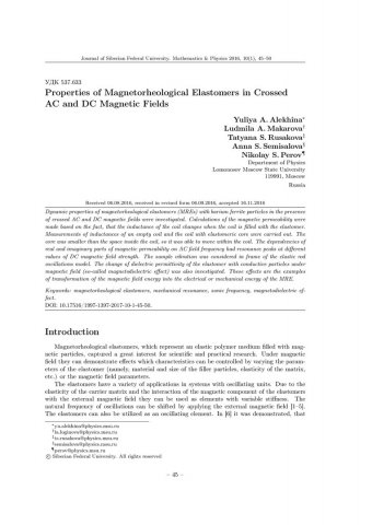 Библиографическое описание:Properties of Magnetorheological Elastomers in Crossed AC and DC Magnetic Fields = Свойства магнитореологических эластомеров в скрещенных переменном и постоянном магнитных полях / Y. A. Alekhina [et al.]. - Текст : непосредственный // Журнал Сибирского федерального университета. Математика и физика. - 2017. - Т. 10, № 1. - С. 45-50. - Библиогр.: с. 49-50. - ISSN 1997-1397.