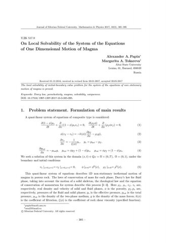 Библиографическое описание:Papin, Alexander. On Local Solvability of the System of the Equations of One Dimensional Motion of Magma = Локальная разрешимость системы уравнений одномерного движения магмы / A. A. Papin, M. A. Tokareva. - Текст : непосредственный // Журнал Сибирского федерального университета. Математика и физика. - 2017. - Т. 10, № 3. - С. 385-395. - Библиогр.: с. 395. - ISSN 1997-1397.