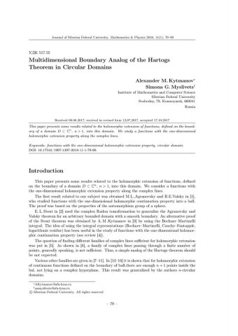 Библиографическое описание:Kytmanov, Alexander. Multidimensional Boundary Analog of the Hartogs Theorem in Circular Domains = Многомерные граничные аналоги теоремы Гартогса в круговых областях / A. M. Kytmanov, S. G. Myslivets. - Текст : непосредственный // Журнал Сибирского федерального университета. Математика и физика. - 2018. - Т. 11, № 1. - С. 79-90. - Библиогр.: с. 90. - ISSN 1997-1397.