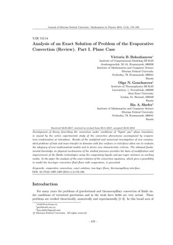 Библиографическое описание:Bekezhanova, Victoria. Analysis of an Exact Solution of Problem of the Evaporative Convection (Review) = Анализ точного решения задачи испарительной конвекции (обзор). Часть I. Плоский случай ; Part I. Plane Case / V. B. Bekezhanova, O. N. Goncharova, I. A. Shefer. - Текст : непосредственный // Журнал Сибирского федерального университета. Математика и физика. - 2018. - Т. 11, № 2. - С. 178–190. - Библиогр.: с. 187-190. - ISSN 1997-1397.