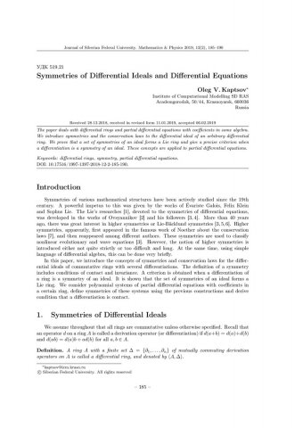 Библиографическое описание:Kaptsov, Oleg. Symmetries of Differential Ideals and Differential Equations = Симметрии дифференциальных идеалов и дифференциальных уравнений / O. V. Kaptsov. - Текст : непосредственный // Журнал Сибирского федерального университета. Математика и физика. - 2019. - Т. 12, № 2. - С. 185–190. - Библиогр.: с. 189-190. - ISSN 1997-1397.