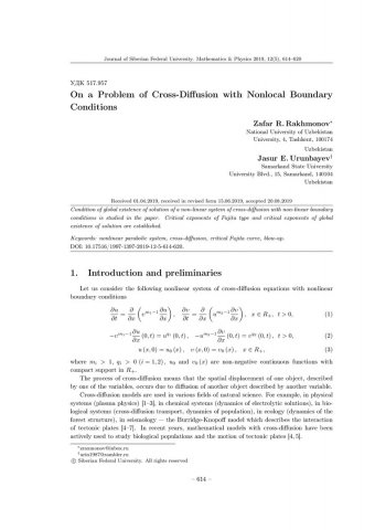 Библиографическое описание:Rakhmonov, Zafar. On a Problem of Cross-Diffusion with Nonlocal Boundary Conditions = Об одной задаче кросс-диффузии с нелокальными граничными условиями / Z. R. Rakhmonov, Ja. E. Urunbayev. - Текст : непосредственный // Журнал Сибирского федерального университета. Математика и физика. - 2019. - Т. 12, № 5. - С. 614-620. - Библиогр.: с. 619-620. - ISSN 1997-1397.