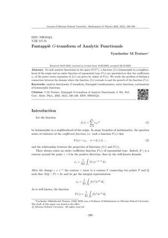 Библиографическое описание:Trutnev, Vyacheslav. Fantappi`e G-transform of Analytic Functionals = G-преобразование Фантаппье аналитических функционалов / V. M. Trutnev. - Текст : непосредственный // Журнал Сибирского федерального университета. Математика и физика. - 2023. - Т. 16, № 2. - С. 230-238. - Библиогр.: с. 237-238. - ISSN 1997-1397.