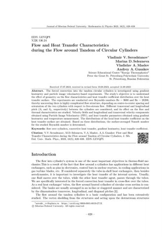 Библиографическое описание:Flow and Heat Transfer Characteristics during the Flow around Tandem of Circular Cylinders = Параметры течения и теплообмена при обтекании тандема круговых цилиндров / V. V. Seroshtanov, M. D. Selezneva, V. A. Maslov, A. A. Gusakov. - Текст : непосредственный // Журнал Сибирского федерального университета. Математика и физика. - 2023. - Т. 16, № 5. - С. 628-638. - Библиогр.: с. 637-638. - ISSN 1997-1397.
