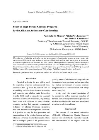 Библиографическое описание:Mikova, N. M. Study of high porous carbons prepared by the alkaline activation of anthracites = Исследование высокопористых углеродов, полученных при щелочной активации антрацитов / N. M. Mikova, N. V. Chesnokov, B. N. Kuznetsov. - Текст : непосредственный // Журнал Сибирского федерального университета. Химия. - 2009. - Т. 2, № 1. - С. 3-10. - Библиогр.: с. 9-10 (24 назв.). - ISSN 1998-2836.