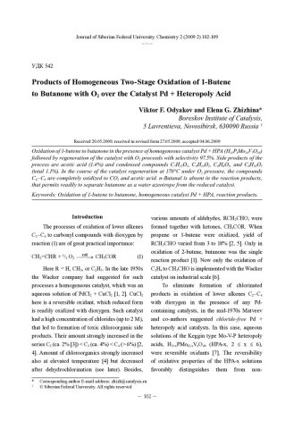 Библиографическое описание:Odyakov, V. F. Products of homogeneous two-stage oxidation of 1-butene to butanone with O[2] over the catalyst Pd + heteropoly acid = Продукты гомогенного двухстадийного окисления 1-бутена в бутанон с O[2] на катализаторе Pd + гетерополикислота / V. F. Odyakov, E. G. Zhizhina. - Текст : непосредственный // Журнал Сибирского федерального университета. Химия. - 2009. - Т. 2, № 2. - С. 102-109. - Библиогр.: с. 108-109 (28 назв.). - ISSN 1998-2836.