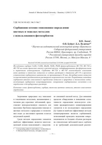 Библиографическое описание:Лосев, В. Н. Сорбционно-атомно-эмиссионное определение цветных и тяжелых металлов с использованием фитосорбентов = Sorption Concentration and Sorption-Atomic-Emission Determination of Non-Ferrous and Heavy Metals Using Phytosorbents / В. Н. Лосев, О. В. Буйко, Б. А. Величко. - Текст : непосредственный // Журнал Сибирского федерального университета. Химия. - 2010. - Т. 3, № 1. - С. 73-78. - Библиогр.: с. 78 (6 назв.). - ISSN 1998-2836.