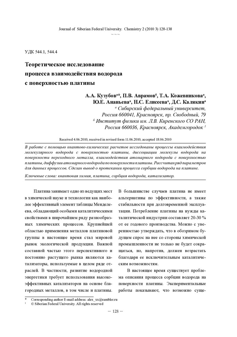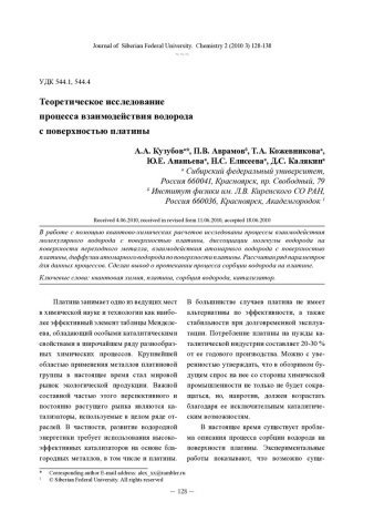 Библиографическое описание:Теоретическое исследование процесса взаимодействия водорода с поверхностью платины = Theoretical Study of the Hydrogen Interaction Process with Platinum Surface / А. А. Кузубов, П. В. Аврамов, Т. А. Кожевникова [и др.]. - Текст : непосредственный // Журнал Сибирского федерального университета. Химия. - 2010. - Т. 3, № 2. - С. 128-138. - Библиогр.: с. 137 (7 назв.). - ISSN 1998-2836.