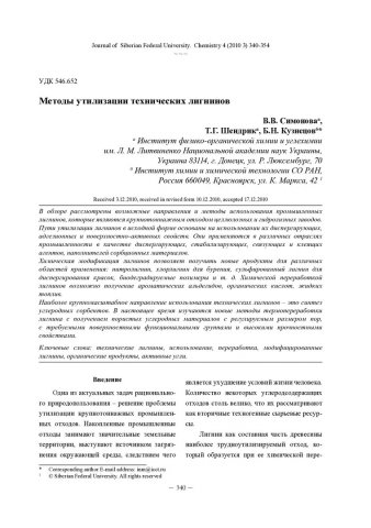 Библиографическое описание:Симонова, В. В. Методы утилизации технических лигнинов = Methods of Industrial Lignins Utilization / В. В. Симонова, Т. Г. Шендрик, Б. Н. Кузнецов. - Текст : непосредственный // Журнал Сибирского федерального университета. Химия. - 2010. - Т. 3, № 4. - С. 340-354. - Библиогр.: с. 350-353 (43 назв.). - ISSN 1998-2836.