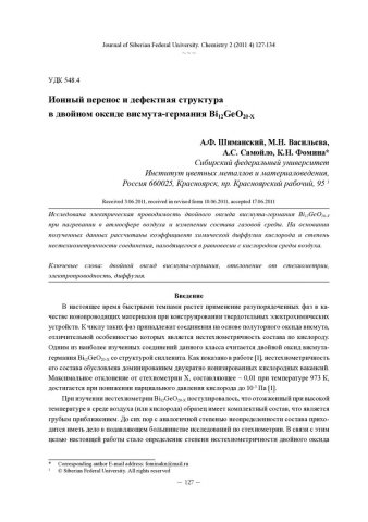 Библиографическое описание:Ионный перенос и дефектная структура в двойном оксиде висмута-германия Bi[12]GeO[20-X] = Ionic Transport and Defect Structure of the Bismuth-Germanium Double Oxide Bi[12]GeO[20-X] / А. Ф. Шиманский, М. Н. Васильева, А. С. Самойло, К. Н. Фомина. - Текст : непосредственный // Журнал Сибирского федерального университета. Химия. - 2011. - Т. 4, № 2. - С. 127-134. - Библиогр.: с. 133-134 (8 назв.). - ISSN 1998-2836.