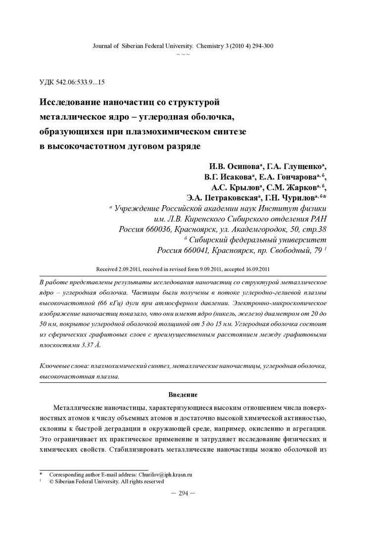 Библиографическое описание:Исследование наночастиц со структурой металлическое ядро - углеродная оболочка, образующихся при плазмохимическом синтезе в высокочастотном дуговом разряде = Investigation of Nanoparticles with Metallic Core-Carbon Shell Structure Created at Plasma-Chemical Synthesis in High Frequency Arc Discharge / И. В. Осипова, Г. А. Глущенко, В. Г. Исакова [и др.]. - Текст : непосредственный // Журнал Сибирского федерального университета. Химия. - 2011. - Т. 4, № 3. - С. 294-300. - Библиогр.: с. 298-299 (10 назв.). - ISSN 1998-2836.