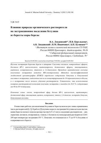 Библиографическое описание:Влияние природы органического растворителя на экстракционное выделение бетулина из бересты коры березы = Influence of the Nature of Organic Solvent on Betulin Isolation from an External Layer of a Birch Bark / В. А. Левданский [и др.]. - Текст : непосредственный // Журнал Сибирского федерального университета. Химия. - 2012. - Т. 5, № 3. - С. 302-310. - Библиогр.: с. 309-310. - ISSN 1998-2836.