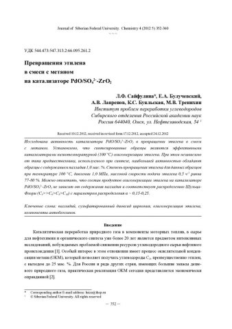 Библиографическое описание:Превращения этилена в смеси с метаном на катализаторе PdO/SO[4]{2-}-ZrO[2] = PdO/SO[4]{2-}-ZrO[2] as Catalyst for Conversion of Ethylene in the Mixture with Methane / Л. Ф. Сайфулина [и др.]. - Текст : непосредственный // Журнал Сибирского федерального университета. Химия. - 2012. - Т. 5, № 4. - С. 352-360 : ил. - Библиогр.: с. 358-359 (17 назв.). - ISSN 1998-2836.