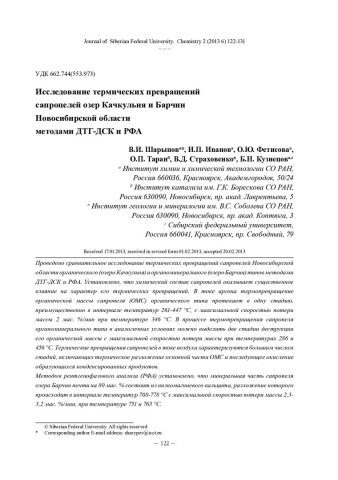 Библиографическое описание:Исследование термических превращений сапропелей озер Качкульня и Барчин Новосибирской области методами ДТГ-ДСК и РФА = Study of Thermal Conversions of Sapropels from Kachkulnya and Barchin Lakes / В. И. Шарыпов [и др.]. - Текст : непосредственный // Журнал Сибирского федерального университета. Химия. - 2013. - Т. 6, № 2. - С. 122-131 : ил. - Библиогр.: с. 129-130 (22 назв.). - ISSN 1998-2836.
