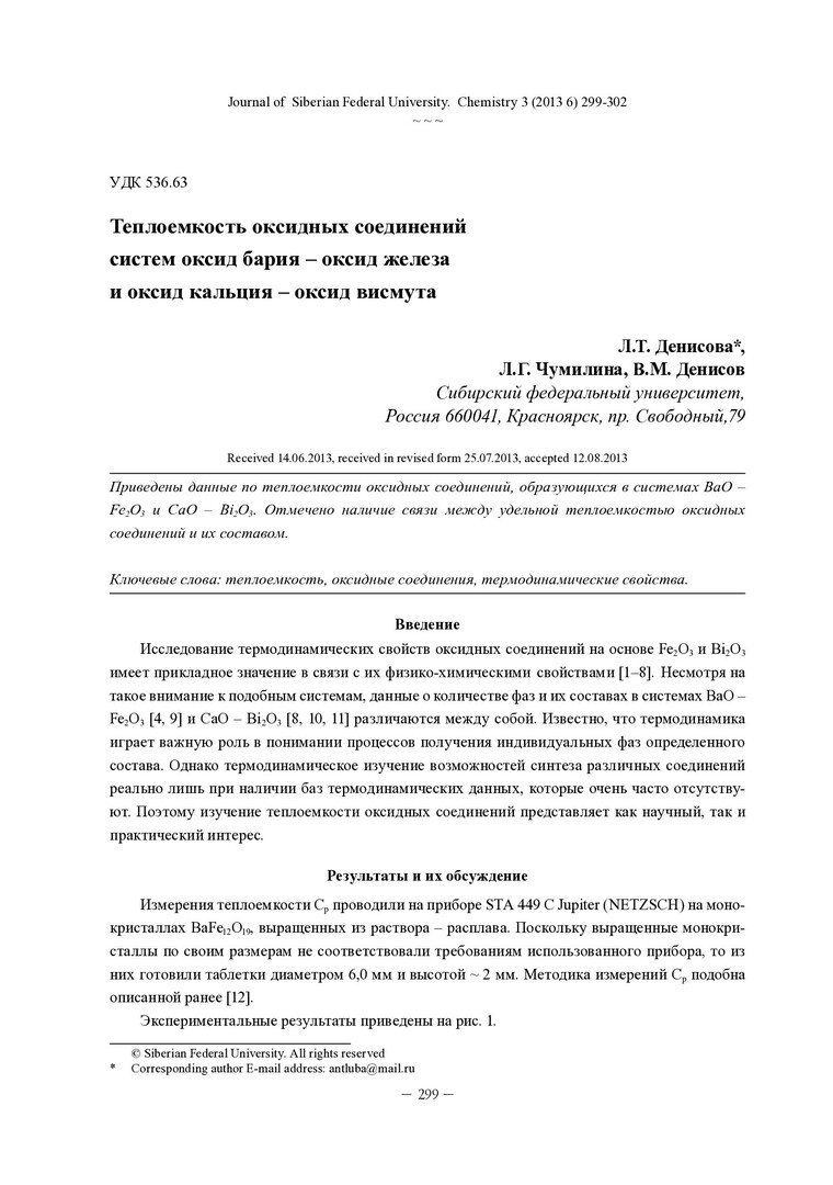 Библиографическое описание:Денисова, Л. Т. Теплоемкость оксидных соединений систем оксид бария – оксид железа и оксид кальция – оксид висмута = High-Temperature Heat Capacity of Oxide Compounds of Barium Oxide – Iron Oxide and Calcium Oxide-Bismuth Oxide Systems / Л. Т. Денисова, Л. Г. Чумилина, В. М. Денисов. - Текст : непосредственный // Журнал Сибирского федерального университета. Химия. - 2013. - Т. 6, № 3. - С. 299-302 : ил. - Библиогр.: с. 301-302 (19 назв.). - ISSN 1998-2836.